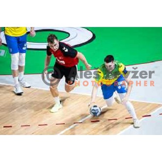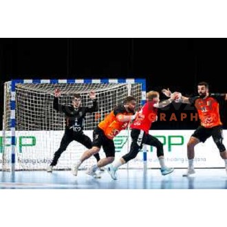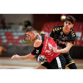 Tilen Strmljan in action during 1.NLB league handball match between Gorenje Velenje and Celje Pivovarna Lasko in Velenje, Slovenia on September 25, 2022