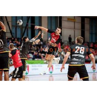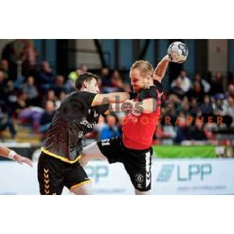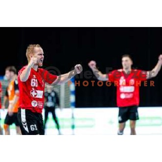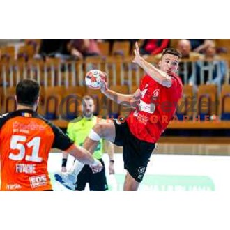 Domen Tajnik in action during 1.NLB league handball match between Gorenje Velenje and Celje Pivovarna Lasko in Velenje, Slovenia on September 25, 2022
