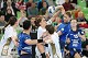 Jure Sterbucl and Andrea Lekic and players of RK Krim Mercator during practice session open to the press in practice court of Stozice Hall, Ljubljana, Slovenia on October 8,2010