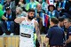 Ziga Dimec and Aleksander Sekulic, head coach of Slovenia during FIBA EuroBasket 2025 Qualifiers basketball match between Slovenia and Israel in Koper, Slovenia on February 25, 2024