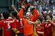 Players of Krim Mercator celebrating victory in Slovenian women's handball Cup beating team Zelene Doline Zalec in the Final in Kocevje on May 17, 2015