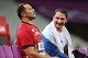 Primoz Kozmus and Minister for Sport Milan Zver at reception for Slovenian Olympic Medalists at Joze Pucnik Airport, Ljubljana 19.08.2008