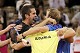 Jure Dolenec, Matej Gaber of Slovenia in action during Olympic handball tournament match between Slovenia and Egypt in Barra Olympic Park at Rio de Janeiro 2016 Olympic games , Brasil on August 7, 2016