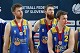 Jakob Cebasek, Aljaz Bratec, Gregor Glas nad players of Slovenia during FIBA Basketball World Cup 2019 European Qualifiers between Slovenia and Latvia in SRC Stozice, Ljubljana, Slovenia on December 2, 2018