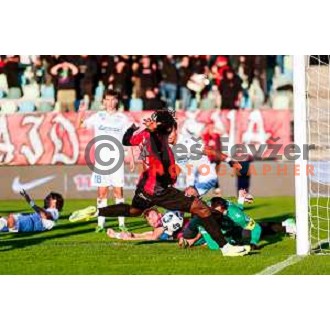 in action during the third match of the Final of 1.DOL Sportklub Volleyball League between ACH Volley and Alpacem Kanal in Tivoli Hall, Ljubljana, Slovenia on April 22, 2025