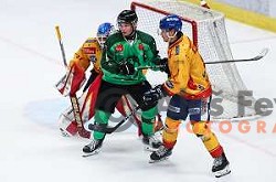 Ziga Pance scores and celebrates a goal during IceHL match between SZ Olimpija and Migros Asiago in Ljubljana, Slovenia on September 27, 2024