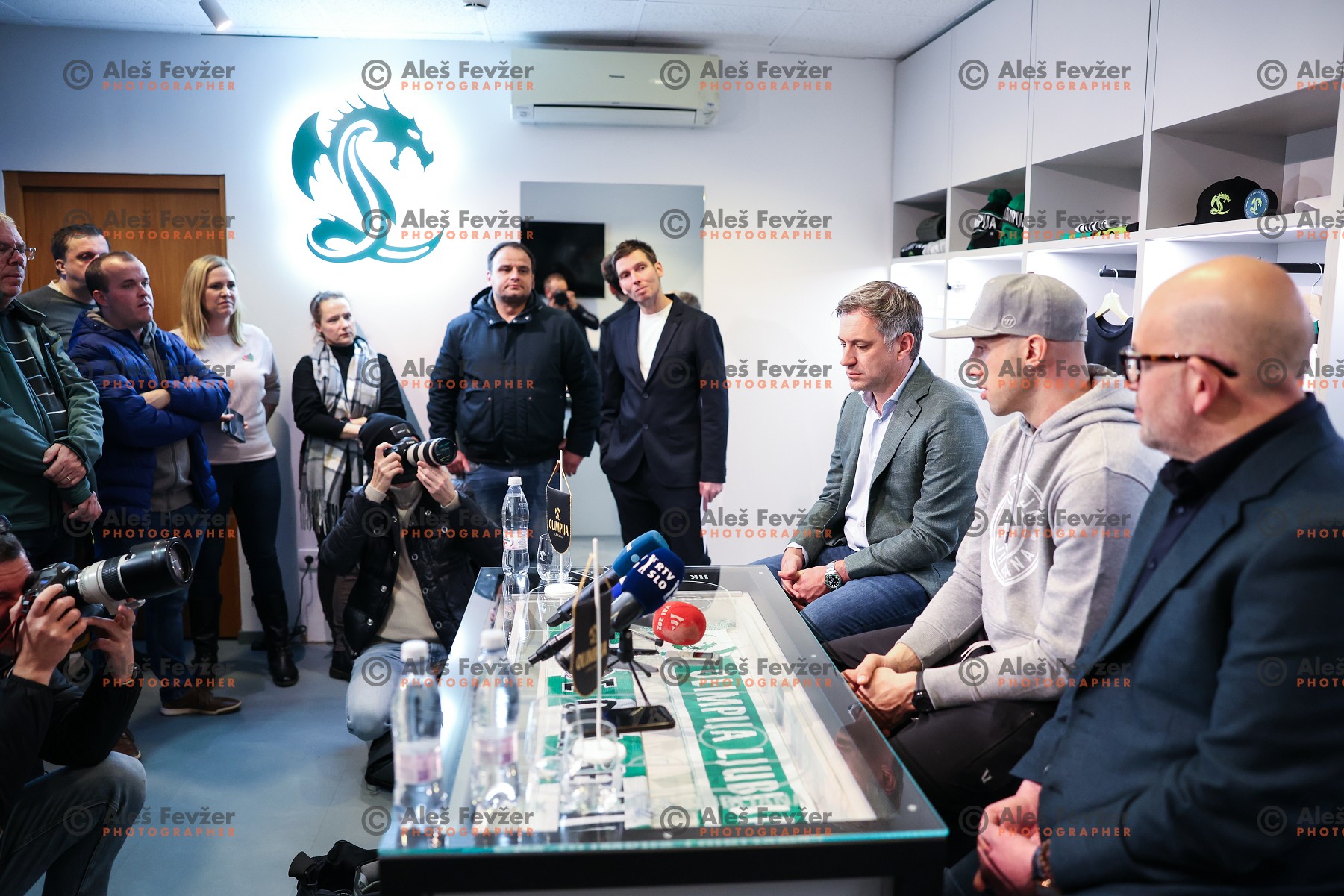 Alexandre Lefebvre, Nick Bonino, NHL ice-hockey star and Miha Butara during press conference of SZ Olimpija in Ljubljana, Slovenia on November 26, 2024