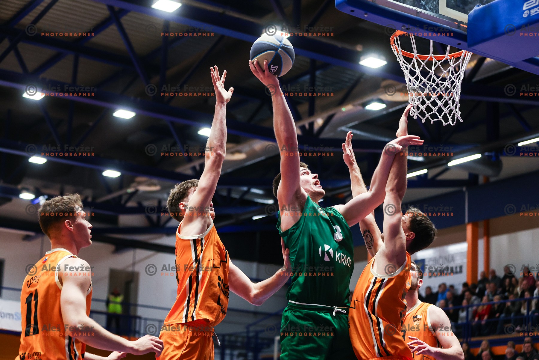 Tibor Mirtic in action during OTP Bank League 2024/2025 basketball match between Kansai Helios and Krka in Domzale, Slovenia on January 2, 2024