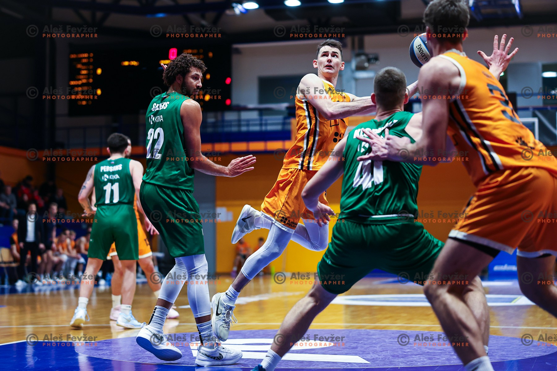 In action during OTP Bank League 2024/2025 basketball match between Kansai Helios and Krka in Domzale, Slovenia on January 2, 2024