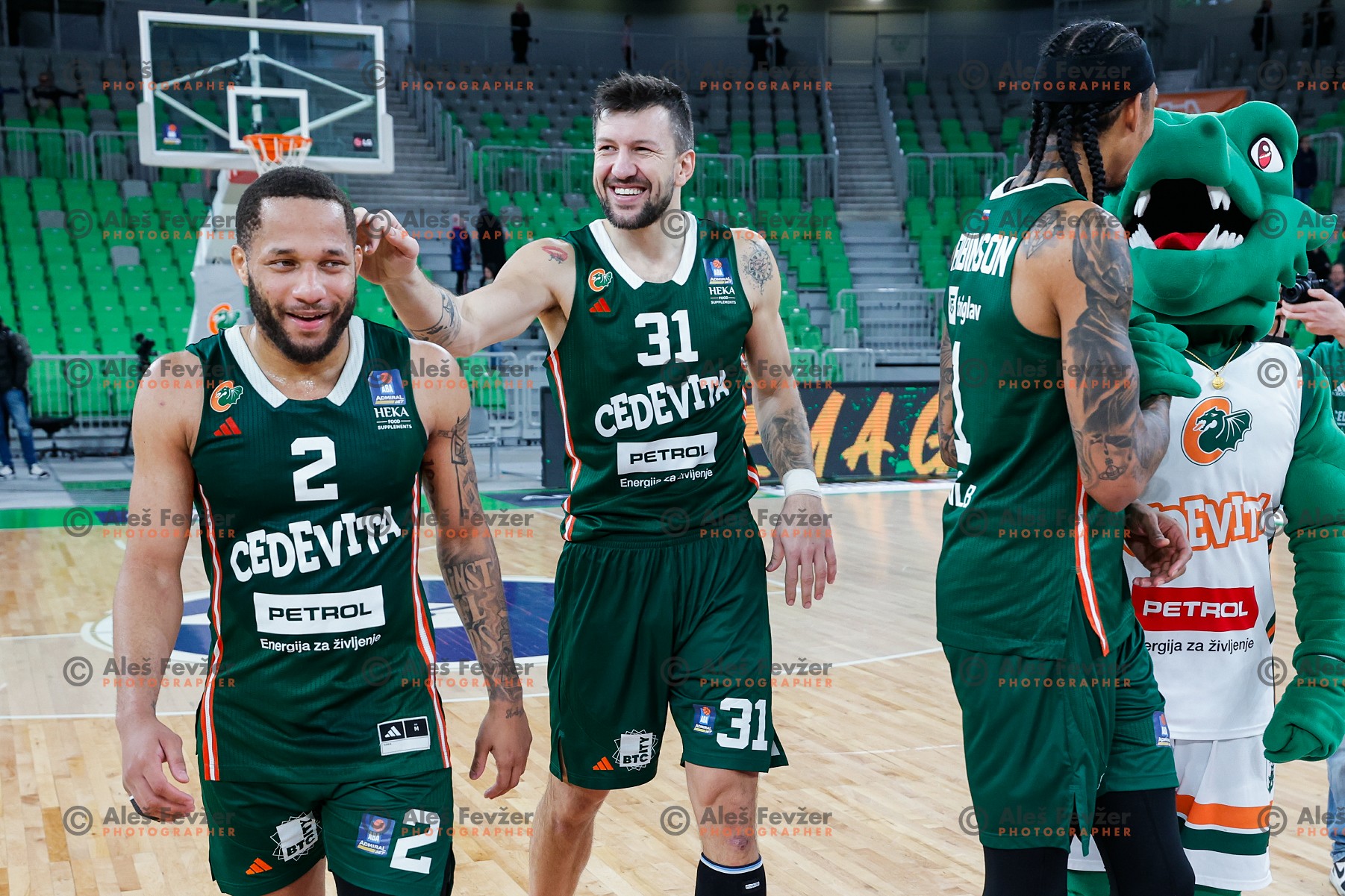 Devante Jones and Andrija Stipanovic during ABA League 2024/2025 basketball match between Cedevita Olimpija and Krka in Ljubljana, Slovenia on January 5, 2025