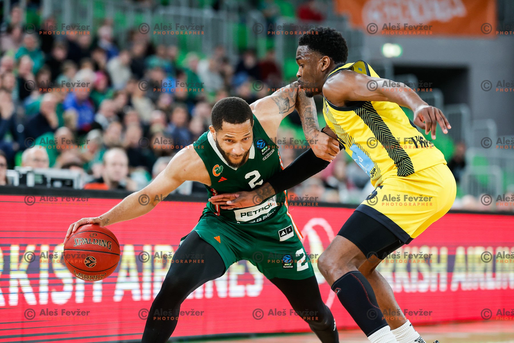 Devante Jones in action during BKT EuroCup 2024/2025 regular season basketball match between Cedevita Olimpija and Aris Thessaloniki in SRC Stozice, Ljubljana, Slovenia on January 8, 2025