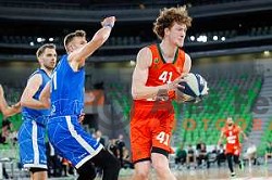 in action during BKT EuroCup 2024/2025 regular season basketball match between Cedevita Olimpija and Aris Thessaloniki in SRC Stozice, Ljubljana, Slovenia on January 8, 2025