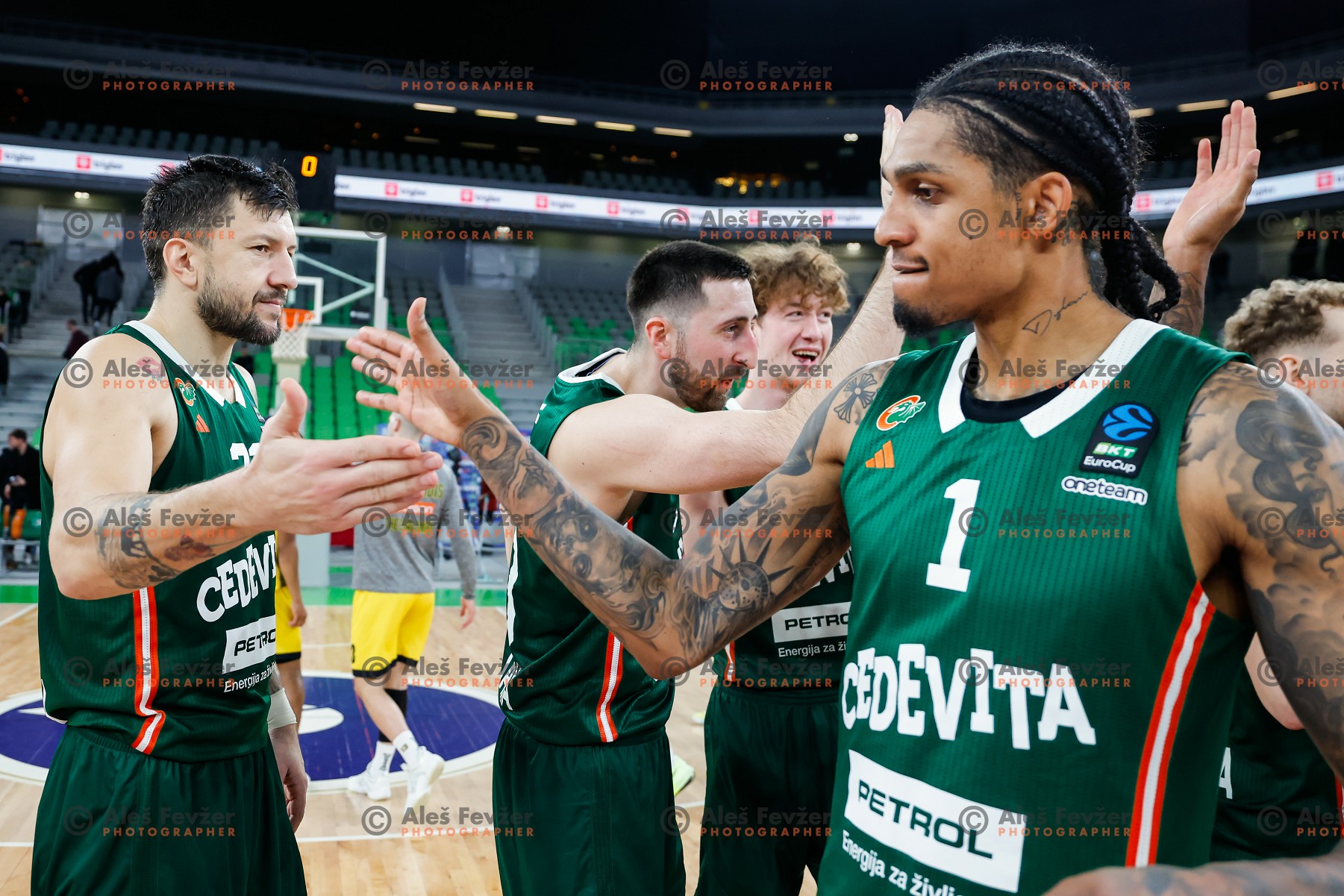 Andrija Stipanovic in action during BKT EuroCup 2024/2025 regular season basketball match between Cedevita Olimpija and Aris Thessaloniki in SRC Stozice, Ljubljana, Slovenia on January 8, 2025