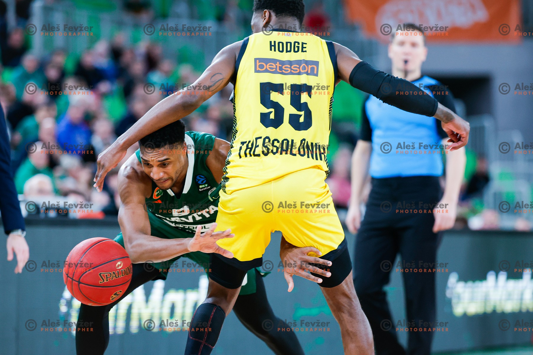 Brynton Lemar in action during BKT EuroCup 2024/2025 regular season basketball match between Cedevita Olimpija and Aris Thessaloniki in SRC Stozice, Ljubljana, Slovenia on January 8, 2025