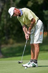 Marjan Urh putting at 11th hole during European Senior Team Championship, played at Kings golf course at Bled, Slovenia 18.8.2007.Photo by Ales Fevzer