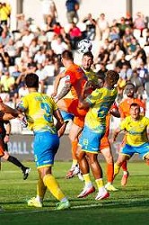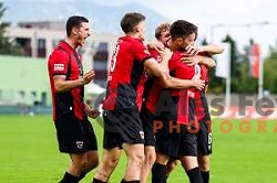 Zan Besir and players of Primorje celebrate a goal during Prva liga Telemach 2025/2026 football match between Primorje and Aluminij in Ajdovscina, Slovenia on September 14, 2025