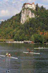 Early morning practice session at Lake Bled a day before first races at 2011 World Rowing Championships at Bled, Slovenia on August 28,2011