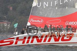 Fans of Great Britain celebrate gold medal in category Men's Lightweight Double Sculls at 2011 World Rowing Championships at Lake Bled, Slovenia on September 4, 2011