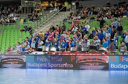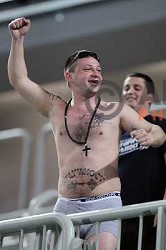 Fan of Buducnost in action during handball match RK Krim Mercator -Buducnost Podgorica in EHF Women's Champions league, played in Stozice, Ljubljana, Slovenia on February 24,2012