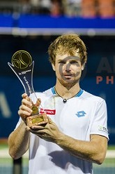 Blaz Kavcic of Slovenia, winner of Tilia Slovenia Open-ATP Challenger Tour, played in SRC Marina, Portoroz, Slovenia, on July 13, 2014
