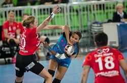 Mirjeta Bajramoska in action during handball match between Krim Mercator - HCM Baia Mare, EHF Women's Champions League, Stozice, Ljubljana, 16.10.2015