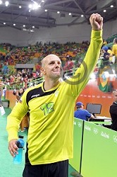 Gorazd Skof of Slovenia in action during Olympic handball tournament match between Slovenia and Poland in Barra Olympic Park at Rio de Janeiro 2016 Olympic games , Brazil on August 15 , 2016