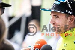 Luka Mezgec at the finish line of Stage 3 at 29th Tour of Slovenia in Postojna, Slovenia on June 16, 2023