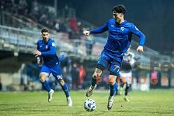 Gasper Petek in action during Prva liga Telemach 2024/2025 football match between Nafta 1903 and Primorje in Sportni park Lendava, Slovenia on Februar 21st, 2025 Photo: Sebastijan Andrejek Bukovec