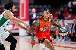 Jaka Blazic of Cedevita Olimpija in action during BKT EuroCup 2024/2025 regular season basketball match between Cedevita Olimpija and Valencia Basket in Arena Stozice, Ljubljana, Slovenia on January 28, 2025. Photo: Filip Barbalic