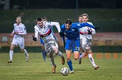 in action during Prva liga Telemach football match between Nafta 1903 and Kalce Radomlje in Sportni park Lendava, Slovenia on February 7, 2025. Photo: Jure Banfi