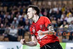 Jure Dolenec celebrating during 1.NLB League handball match between RK Celje PL and LL Grosist Slovan in Dvorana Zlatorog, Celje, Slovenia on February 22, 2025. Photo: Jure Banfi