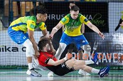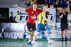 Tarik Mlivic in action during 1.NLB League handball match between RK Celje PL and LL Grosist Slovan in Dvorana Zlatorog, Celje, Slovenia on February 22, 2025. Photo: Jure Banfi