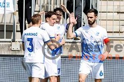 Dragan Brkic and players of Nafta 1903 celebrate a goal during Prva liga Telemach 2024/2025 football match between Primorje and Nafta 1903 in Ajdovscina, Slovenia on April 19, 2025
