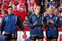 Vidic, Irman, Golubic at handball match Krim Mercator- Viborg in round 3 of EHF Championsleague, played at Kodeljevo, Ljubljana, Slovenia 15.11.2008. Krim Mercator won 38:34