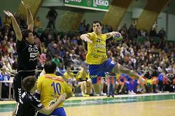 Nemanja Zelenovic in action at handball match Gorenje Velenje-Celje Pivovarna Lasko in the Final of Slovenian Handball Cup played in Tri Lilije Hall, Lasko, Slovenia on March 3, 2013