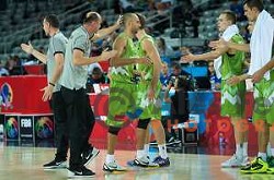 of Slovenia in action during match between Croatia and Slovenia in preliminary group C of Eurobasket 2015 in Arena Zagreb, Croatia on September 5, 2015