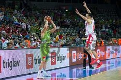 of Slovenia in action during match between Slovenia and Georgia in preliminary group C of Eurobasket 2015 in Arena Zagreb, Croatia on September 6th, 2015.