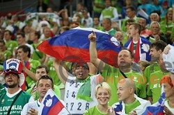 Fans of Slovenia in action during match between Greece and Slovenia in preliminary group C of Eurobasket 2015 in Arena Zagreb, Croatia on September 8, 2015
