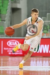 Blaz Mesicek in action in ABA league basketball match between Union Olimpija Ljubljana and Mega Leks in SRC Stozice, Ljubljana, Slovenia on November 21, 2015