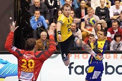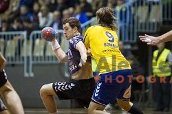 Fahrudin Melic of RK Gorenje Velenje in action during handball match RK Gorenje Velenje-SK Vive Targi Kielce in EHF Velux Champions league, played in Red Hall, Velenje, Slovenia on February 23, 2013