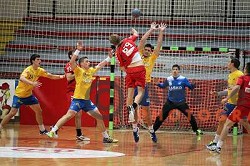 Fredi Radojkovic of Cimos Koper in action during handball match Cimos Koper-Gorenje Velenje in round 8 of 1.NLB leasing league 2012/13, played in Bonifika Hall, Koper, Slovenia on October 27, 2012