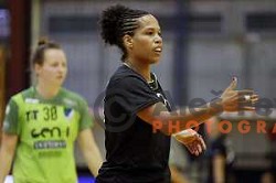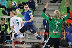 Susann Muller of Krim Mercator in action during handball match Krim Mercator - Podravka in EHF Women's Champion league, played in Arena Stozice, Ljubljana, Slovenia on November 18, 2012