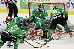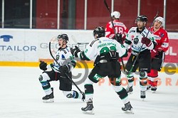of Telemach Olimpija in action during ice-hockey match Telemach Olimpija-KAC in EBEL league 2015/2016 in Hala Tivoli, Ljubljana, Slovenia on October 9, 2015