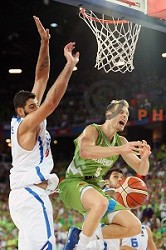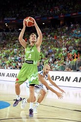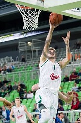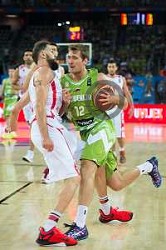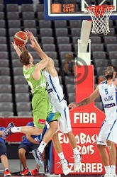Sasa Zagorac in action in EuroCup basketball match between Union Olimpija Ljubljana (Slovenia) and Dolomiti Energia Trento (Italy) in SRC Stozice, Ljubljana, Slovenia on October 14, 2015