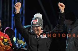 Ema Klinec at reception for best slovenian winter sportsmen and sportswoman for fans during Q max party at Congress square, Ljubljana, Slovenia on March 22, 2016