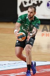 Ziga Mlakar in action during 1.NLB league handball match between MRK Ljubljana and Celje Pivovarna Lasko in Kodeljevo Hall, Ljubljana, Slovenia on December 12, 2020