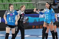 Jovana Risovic and Samara Da Silva Vieira during EHF Champions League Women eight-final 2020-2021 handball match between Krim Mercator (SLO) and CSKA (RUS) in Ljubljana, Slovenia on March 6, 2021