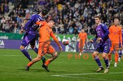 Matic Vrbanec in action during Prva liga Telemach football match between Maribor and Mura in Ljudski vrt, Maribor, Slovenia on February 22, 2025. Photo: Jure Banfi