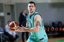 Miha Cerkvenik of Slovenia National Basketball team during practice session in Mala Dvorana Stožice, Ljubljana, Slovenia on February 17, 2025. Photo: Filip Barbalic