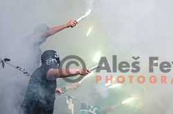 Fans of Olimpija celebrate Slovenian National Title after the Prva liga Telemach 2024/2025 football match between Bravo and Olimpija in Ljubljana, Slovenia on May 24, 2025